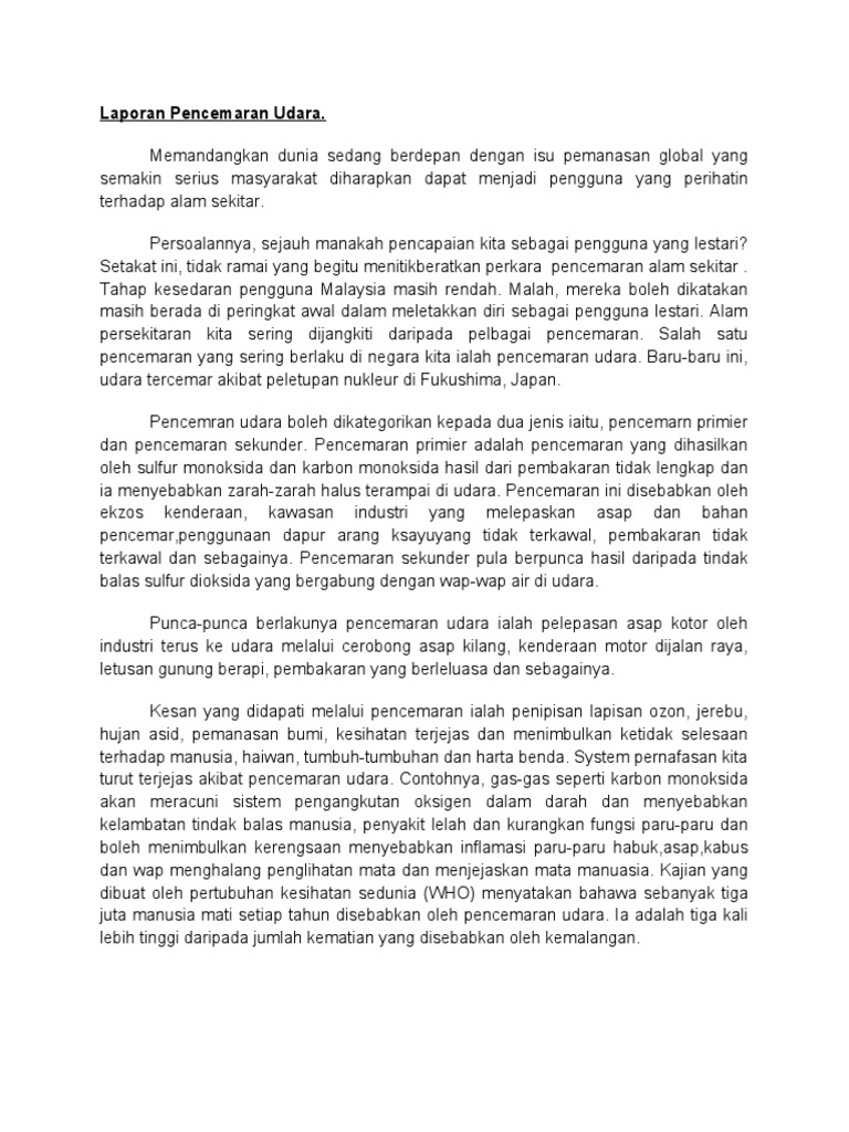 Contoh Karangan Pmr Cara Cara Mengatasi Pencemaran Alam Sekitar