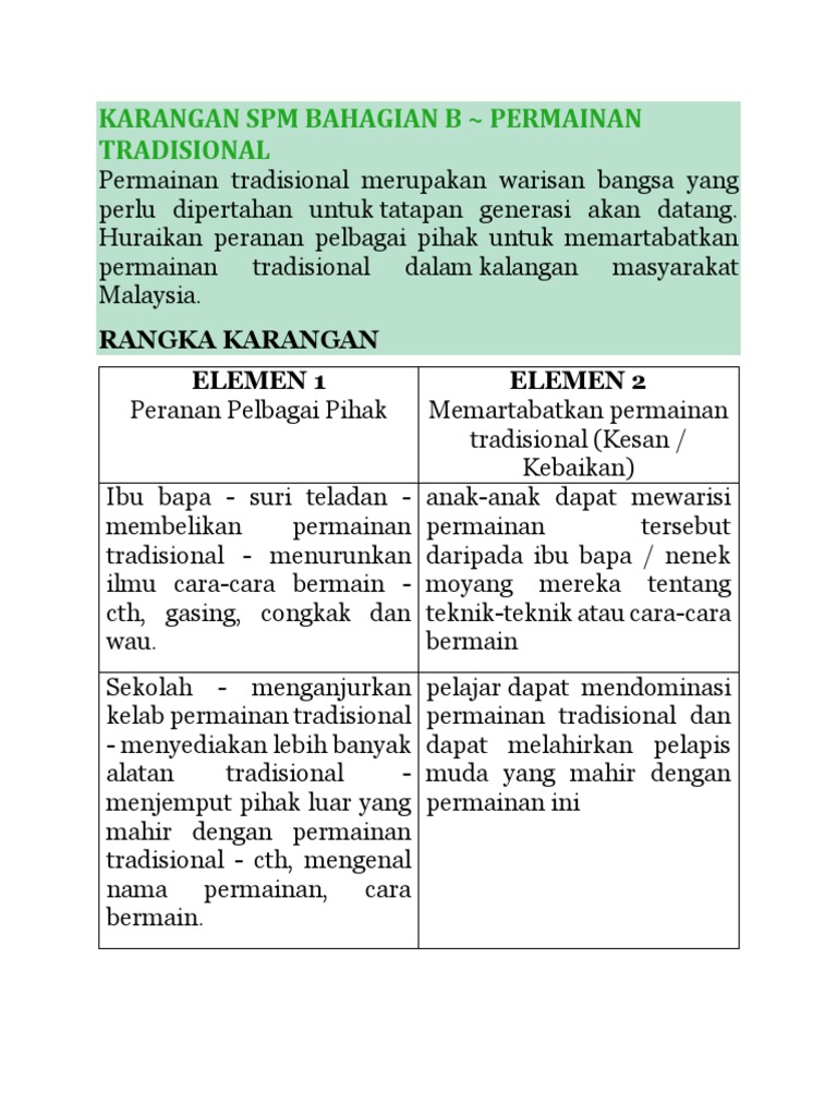 Laman Bahasa Melayu Spm Hasilan Karangan Cemerlang Pelajar Saya Langkah Mempopularkan Permainan Tradisional Soalan Peperiksaan Percubaan Mrsm 2018