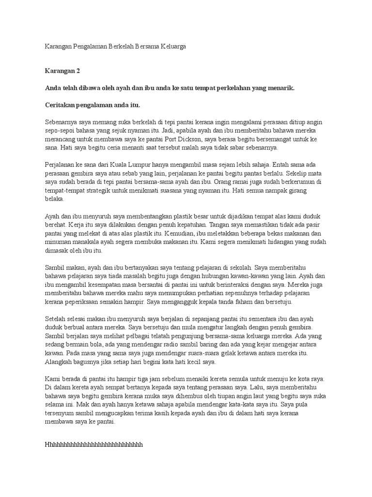 Karangan Bahasa Melayu Karangan Pergi Berkelah Bersama Keluarga Di Pantai