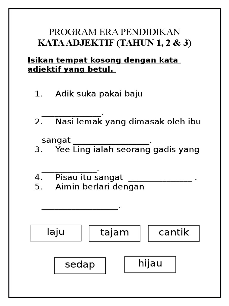 Latihan Kata Adjektif Tahun 1