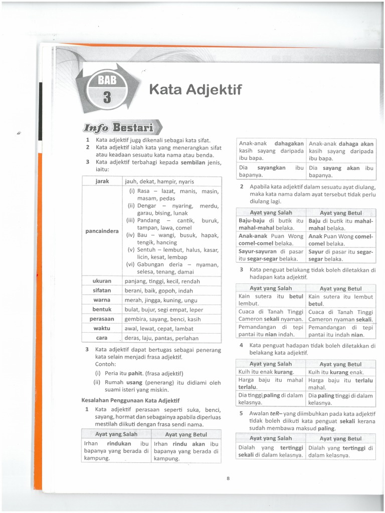 Kata adjektif emosi yang tidak berimbuhan mesti diikuti dengan kata hubung atau kata sendi jika hendak dipanjangkan. Kata adjektif boleh didahului atau diikuti kata penguat. Latihan latihan ini disediakan untuk membantu murid murid sekolah rendah dalam memahami dan menguasai bahasa melayu dengan lebih efektif. Kata adjektif other contents.