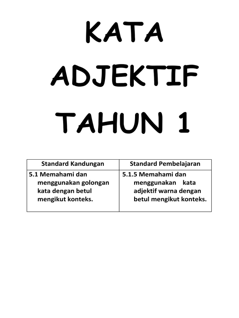 Kata Adjektif Tahun 4 Pages 1 7 Text Version Fliphtml5