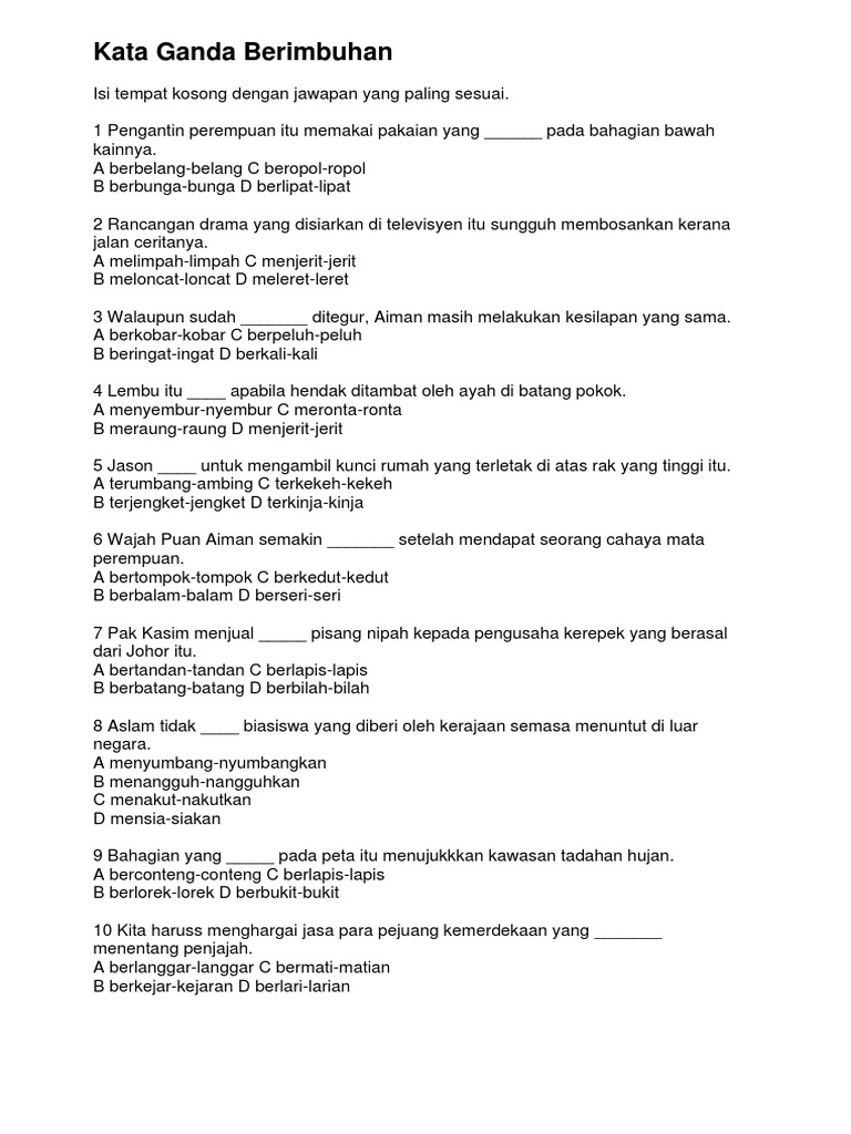Kata Ganda Berimbuhan Tahun 2