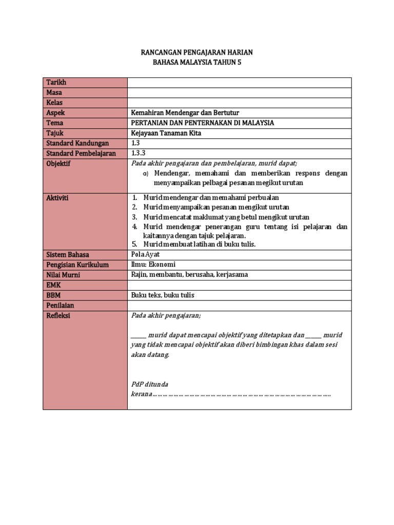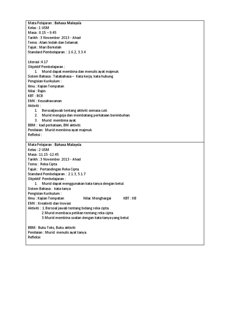 Rancangan Mengajar Bm Tahun 3 2015 Docx Docx Document