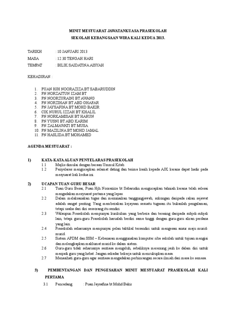 Agenda Mesyuarat Dan Contoh Lengkap Catatan Minit Mesyuarat Panitia S