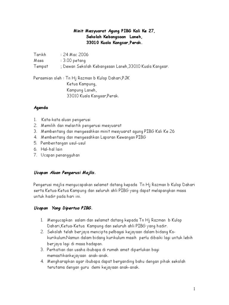 Mesyuarat Agung Tahunan Ucapan Aluan Yang Dipertua Pkskkys Perasmian Mesyuarat Agung Tahunan Pkskkys Pdf Document
