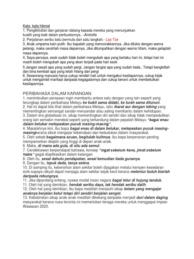 Peribahasa Kata Kata Hikmat Untuk Spm Karangan