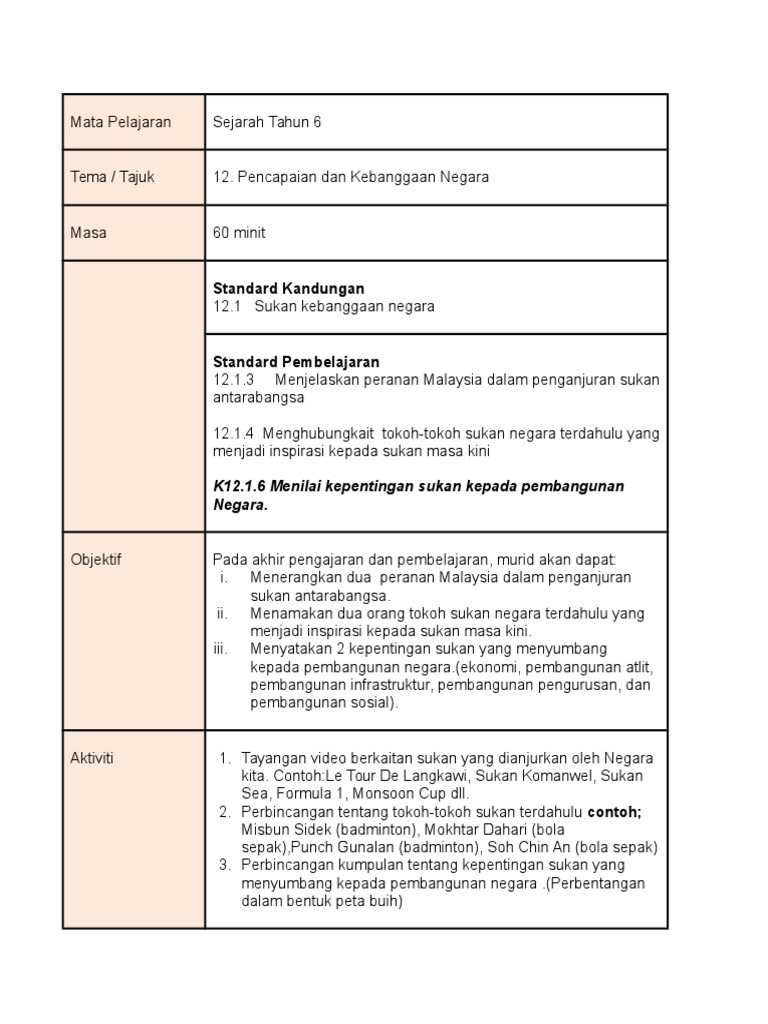 12 1 Sukan Kebanggan Negara Sejarah Tahun 6 Malaysia Di Persada Sukan