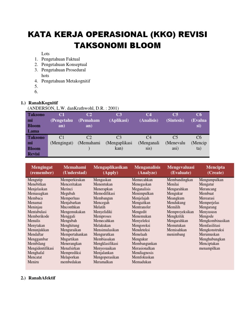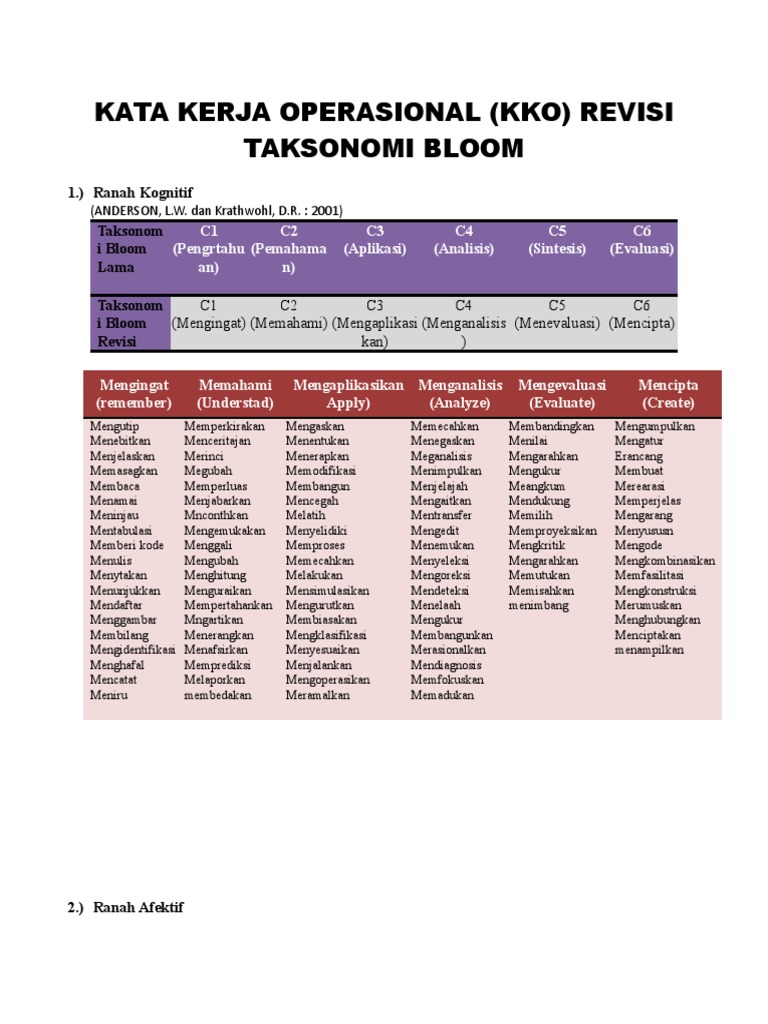 Kko Kata Kerja Operasional Revisi Taksonomi Bloom
