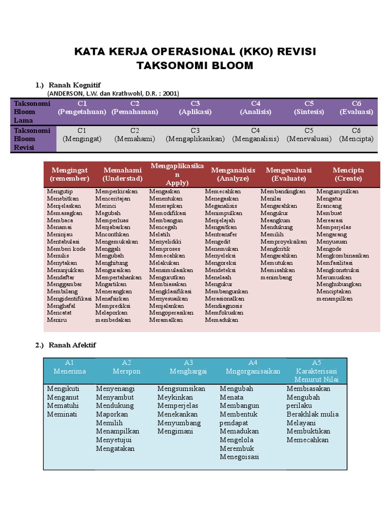 Kata Kerja Operasional Kko Edisi Revisi Teori Bloom Doc Google Drive