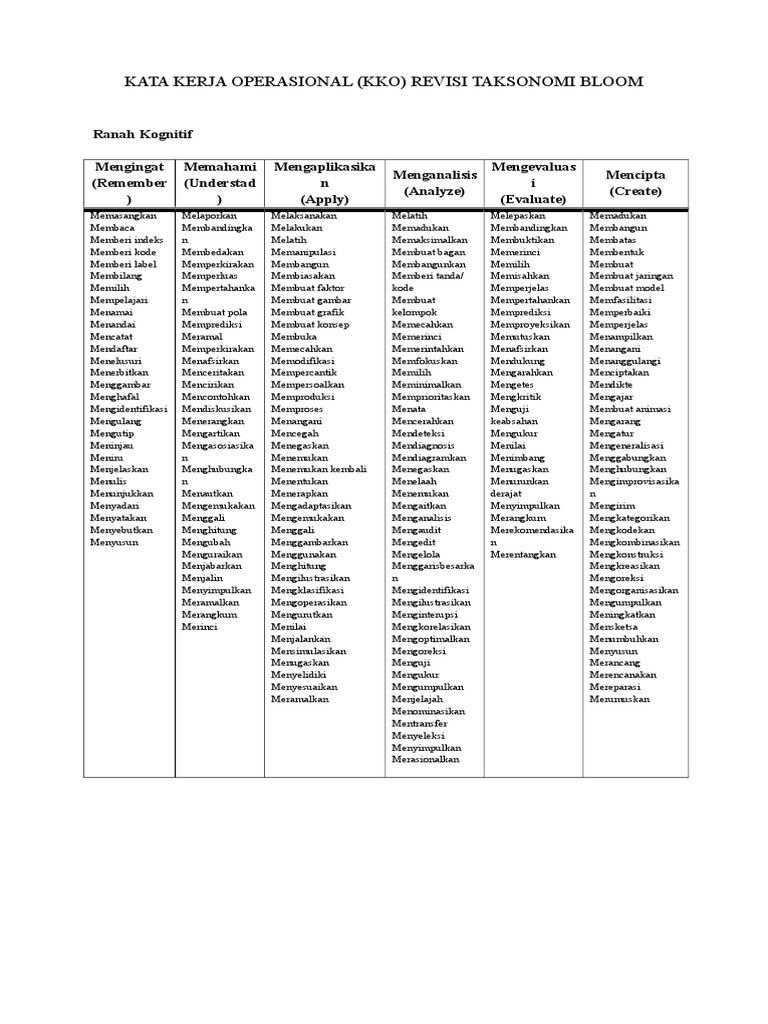 Kata Kerja Operasional Bloom Revisi Doc Kata Kerja Operasional Kko Revisi Taksonomi Bloom 1 Ranah Kognitif Anderson L W Dan Krathwohl D R 2001 Taksono Course Hero