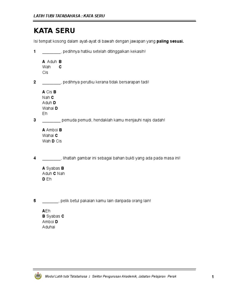Latihan Kata Seru Tahun 1