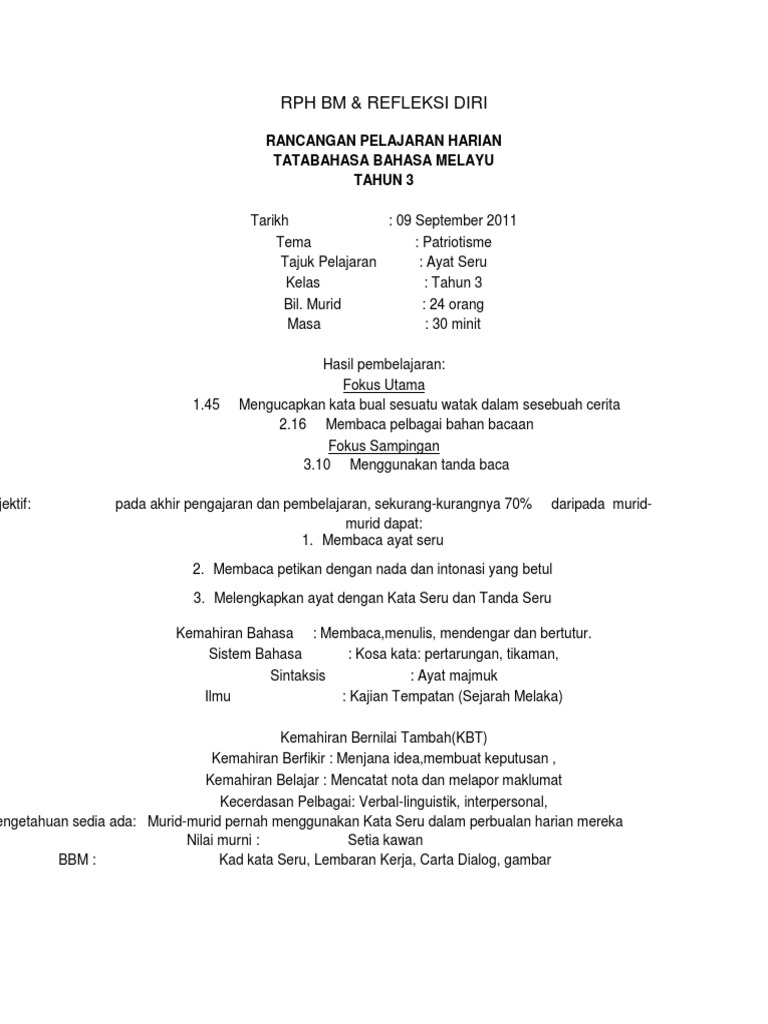 Kata Seru Bahasa Malaysia Tahun 3 Docx