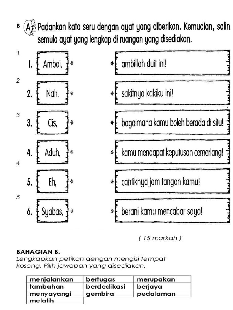 Latihan Bahasa Melayu Tahun 1 Kata Seru Geng Sekolah