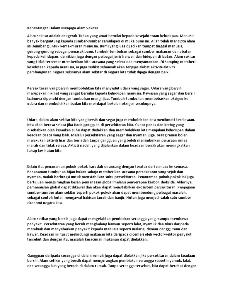 Contoh Karangan Kepentingan Menjaga Alam Sekitar