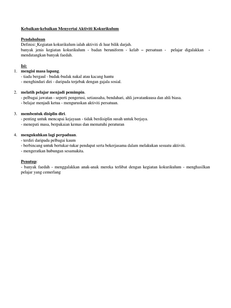 Karangan Kepentingan Kegiatan Kokurikulum Pusat Tuisyen Inovasi Impian Facebook