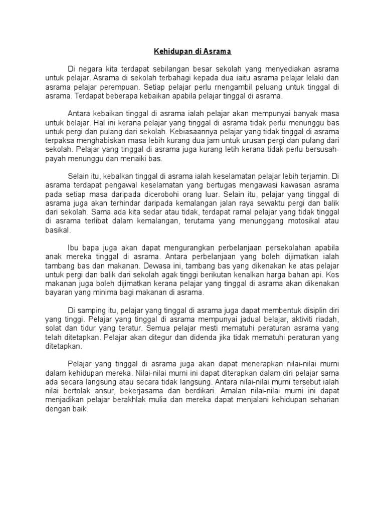 Kehidupan Di Asrama Pdf Document