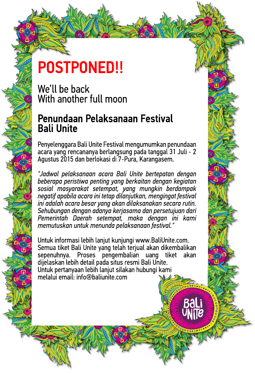Bali Unite On Twitter We Greatly Regret That We Have To Postpone Bali Unite To A Date Yet To Be Decided More Info Http T Co Lmdguongf9 Http T Co Yd4ipzpvxd
