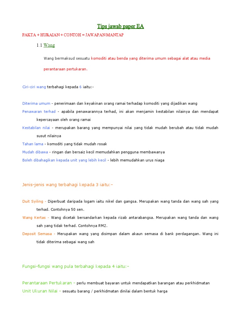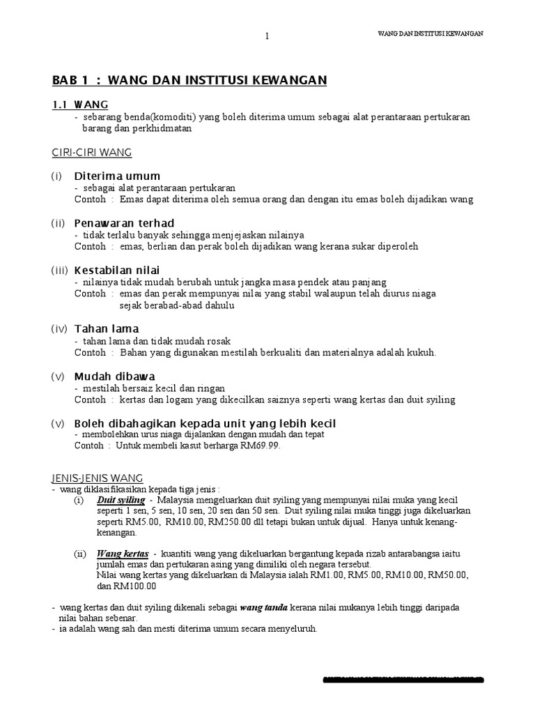 Tingkatan 5 Bab 1 Docx Tingkatan 5 Bab 1 Wang Dan Institusi Kewangan Wang Adalah Benda Yang Boleh Diterima Umum Sebagai Alat Pertukaran Barang Dan Course Hero
