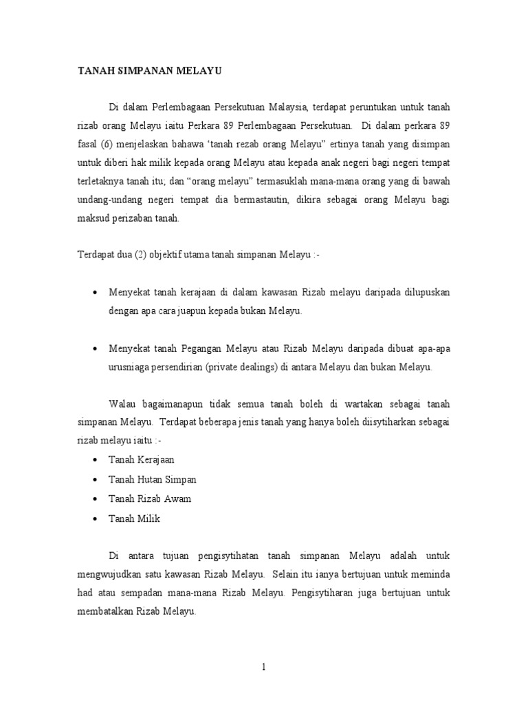 Bincangkan Konsep Tanah Simpanan Melayu